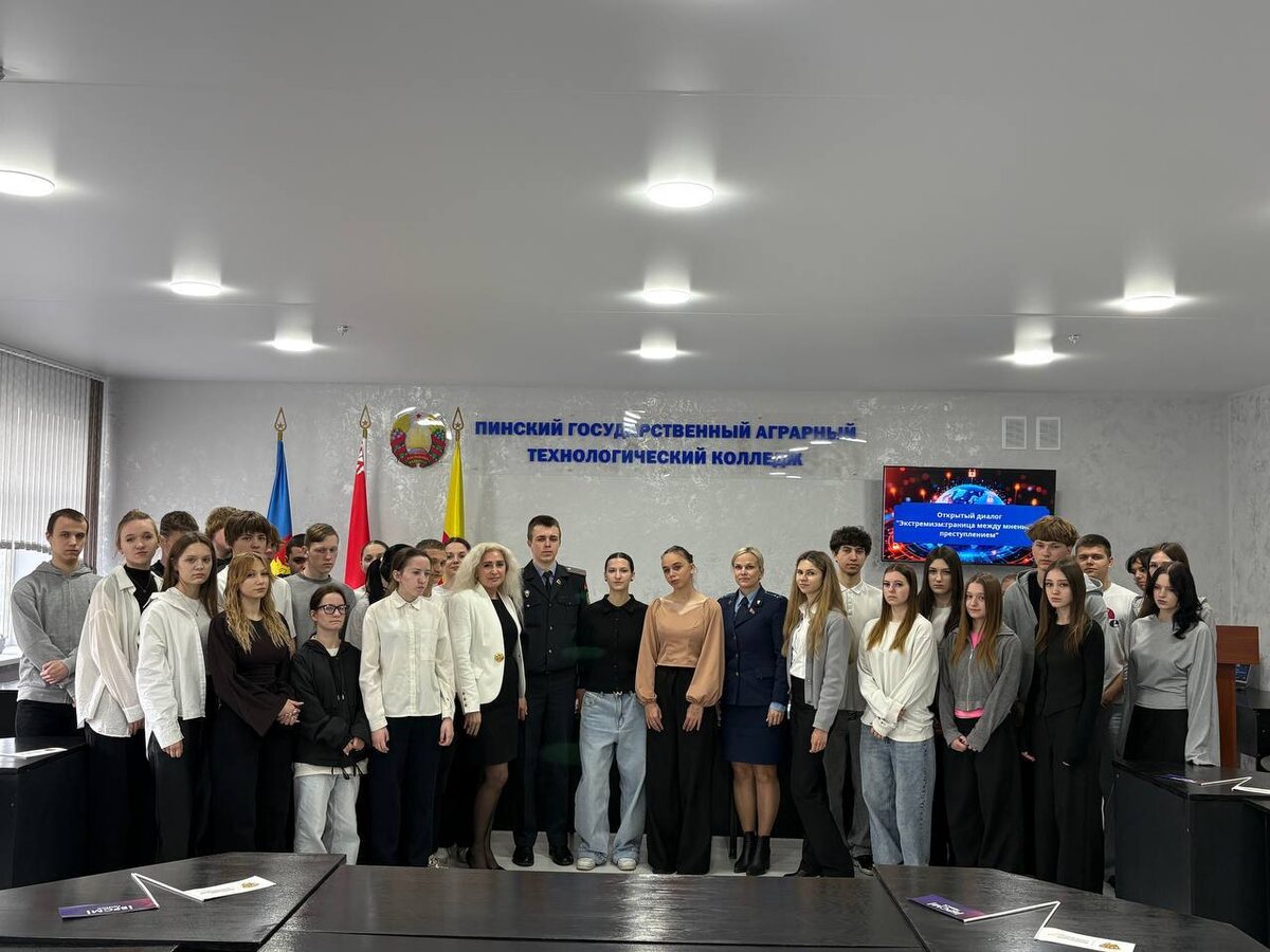С членами ПО ОО "БРСМ" аграрного технологического колледжа состоялся открытый диалог «Экстремизм: граница между мнением и преступлением». Спикерами встречи выступили заместитель межрайонного прокурора Ольга Чимбур, участковый инспектор ИДН ГОВД Алексей Козак, главный специалист ГО ОО «БРСМ» Вероника Волуевич и заместитель директора по ВР Инна Мацкевич. Спикеры рассказали учащимся об ответственности за экстремистскую деятельность, публикации в сети Интернет, половой неприкосновенности, киберпреступности и правилах цифровой безопасности. – Открытый диалог стал важной площадкой для обсуждения актуальной темы и напомнил всем участникам о том, что свобода слова всегда должна идти рука об руку с ответственностью, – отметили участники встречи.