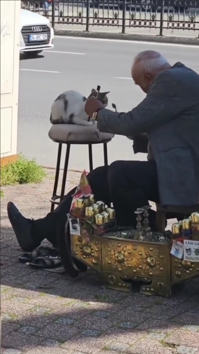 Этот кот в Турции нашёл своего личного массажиста. Местный чистильщик обуви явно решил расширить профиль: теперь он не просто приводит в порядок ботинки, а делает профессиональную «укладку шерсти» хвостатым клиентам.