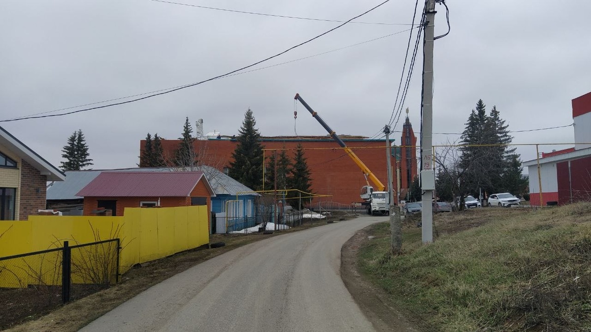 Арча мәдәният йортында ремонт бара. Түбәдән башладылар.