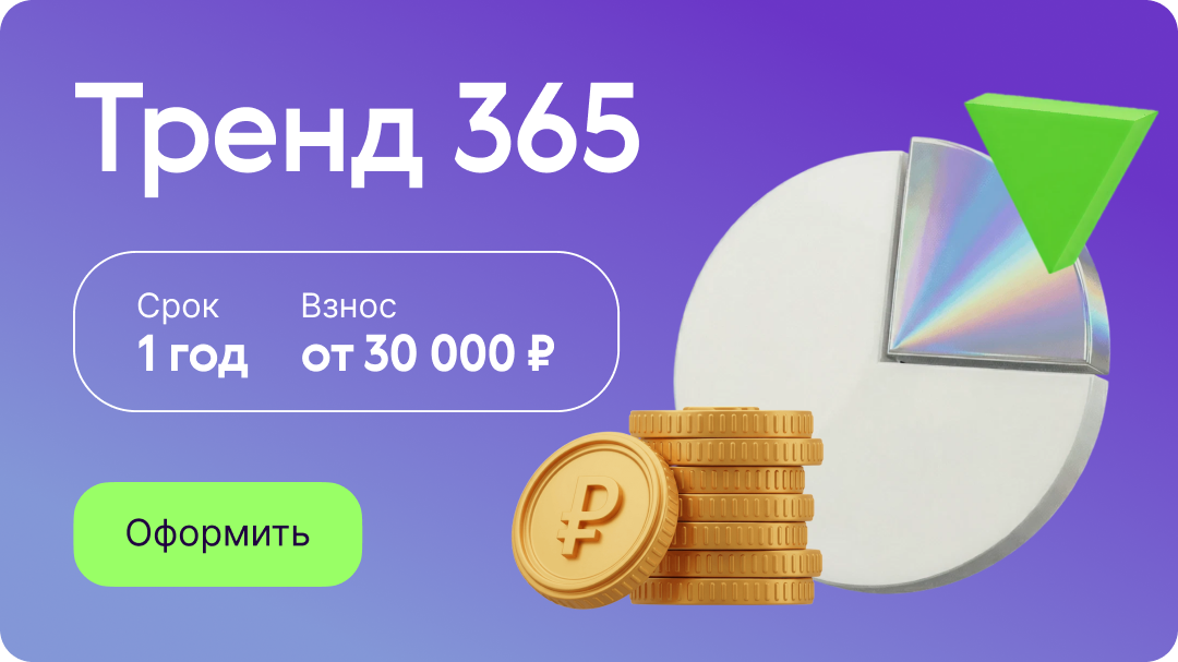 У вас уже есть, к примеру, накопительный счёт, и вы понимаете, что доходность могла бы быть выше. Тренд 365 — способ добавить к вашей финансовой стратегии инструмент с потенциалом роста без отказа от привычной надёжности.