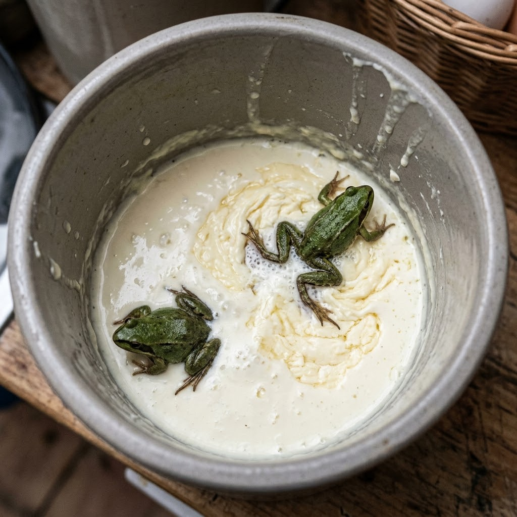 Попробовала бы эта лягушка побарахтаться в молокосодержащем продукте из магазина.