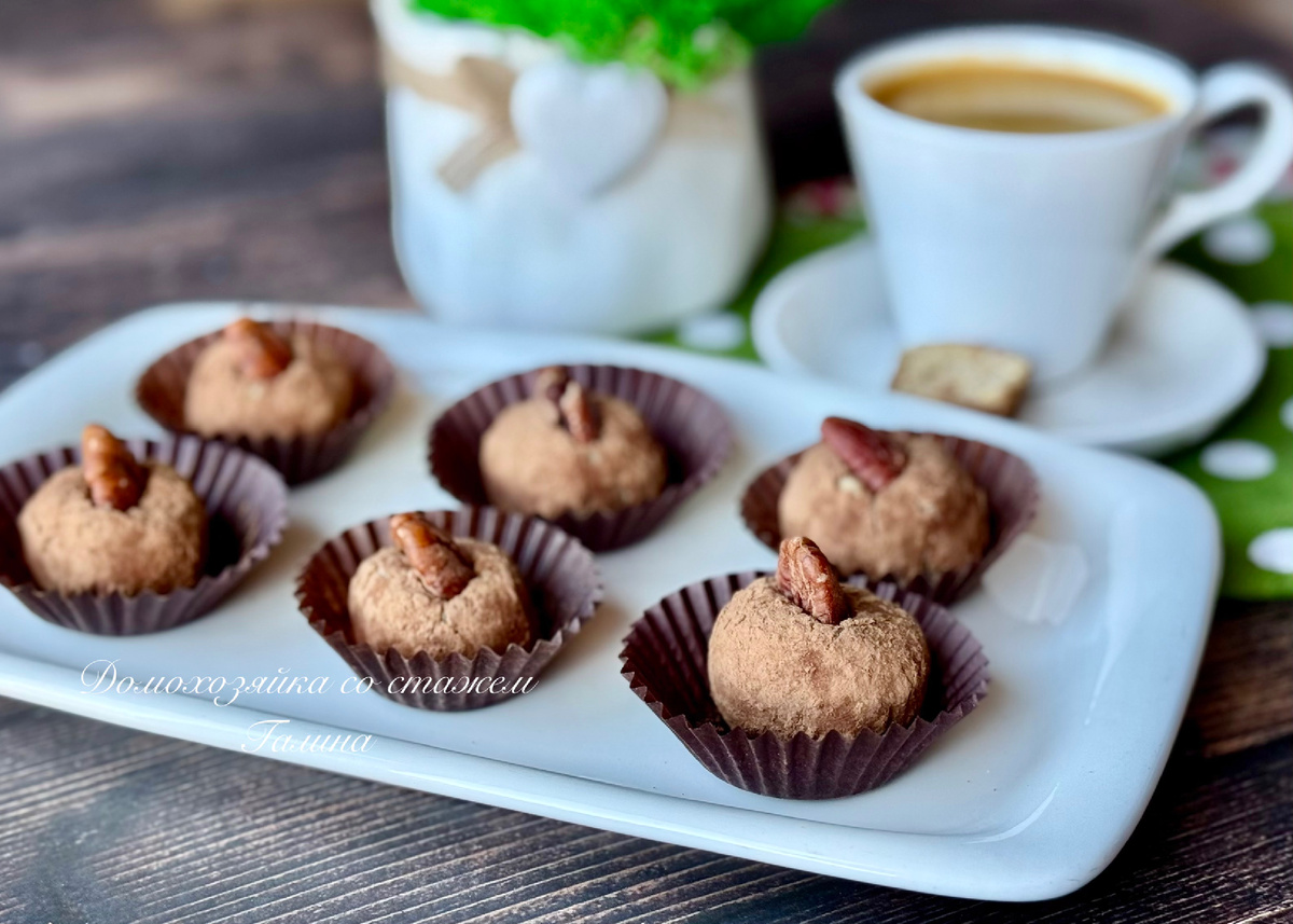 Кто не знает состав, вряд ли догадается, из чего эти «конфеты-пирожные». По текстуре и вкусу немного напоминают пирожное «картошка», но готовятся в гораздо проще. А главное, можно позволить себе не одну штучку, а целых три 😂! Первым попробовал муж и сразу сдался. Угостила дочь и спросила: «Угадай, из чего?» Орехи она раскусила сразу, ну не мудрено, они и внутри, и сверху для декора. А вот остальные ингредиенты так и не угадала. Когда раскрыла секрет, она удивилась. Буду ли повторять? Однозначно да! Десерт пришёлся по вкусу, а основа отлично подходит для экспериментов. Можно менять добавки, подстраивать под настроение, и каждый раз будет что-то новое. Для начала взяла банку консервированного нута. Слила жидкость, тщательно промыла зёрна и дала им хорошо стеч, в итоге получилось ровно 200 г. Для первого раза решила не заморачиваться с варкой, но в следующий раз обязательно приготовлю нут сама. Выложила нут в чашу блендера. Туда же добавила обжаренные орехи пекан (кстати, вместо них от