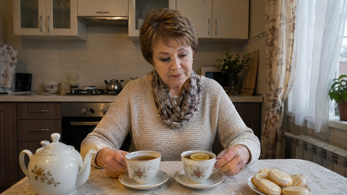 Сначала заметила блюдце. На белой кромке синел скол, знакомый до ломоты в пальцах. Эта чашка много лет стояла в глубине буфета, за банкой с лавровым листом и стопкой старых салфеток, и без нужды её никто не трогал. Рядом темнел чай, уже остывший, с тонким кружком лимона у стенки. На второй чашке, той самой, из которой обычно пила сама Елена, остался мутный след от губ.