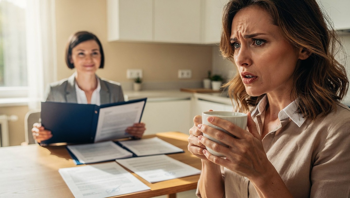 Анна стояла посреди кухни с чашкой кофе в руке и не могла пошевелиться. На столе лежала папка из синего картона. Лариса спокойно расстегнула молнию и веером разложила несколько листов. Каждое движение — выверенное, отрепетированное, как у диктора на совещании.