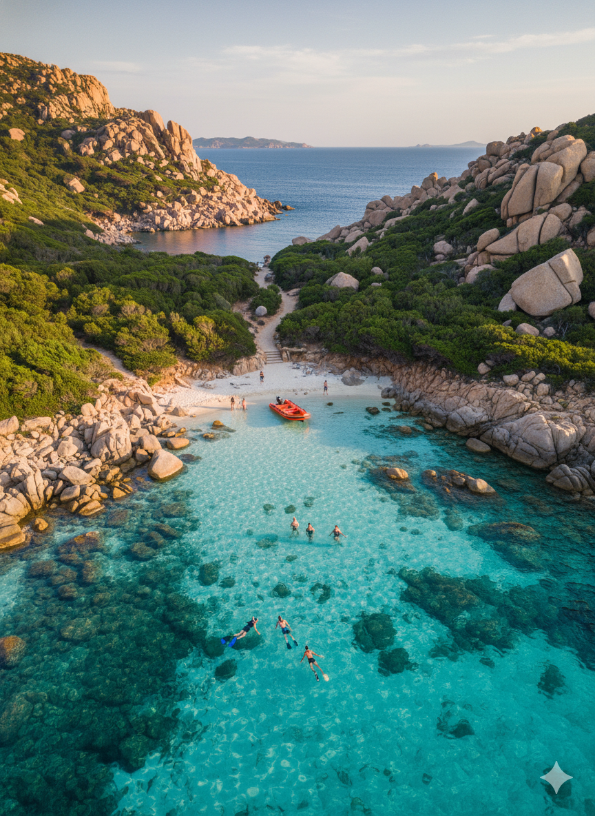 Лучший способ познакомиться с архипелагом — дневной морской тур: лодка заходит в бирюзовые бухты Кала-Корсара и Кала-Спалматора, останавливается у знаменитого «Розового пляжа» острова Будделли (высадка запрещена, но вид с воды поражает) и у отвесных гранитных скал Спарджи. На самом острове Ла-Маддалена стоит прогуляться по историческому центру вокруг Пьяцца Умберто I и заглянуть в музей Гарибальди на Капрере.