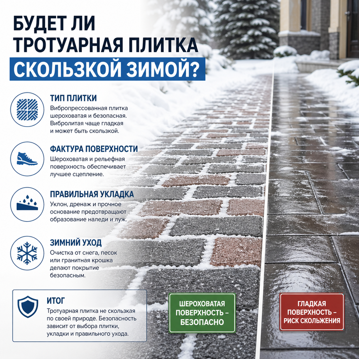 Будет ли тротуарная плитка скользкой зимой? Разбираемся без мифов