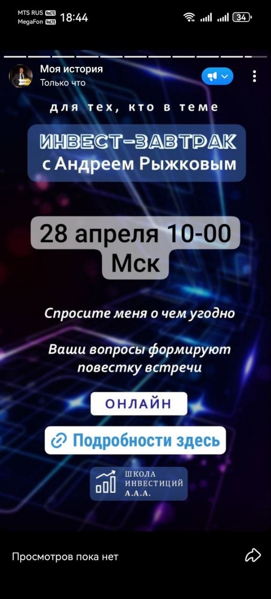 инвест-завтрак ☕ Это встреча, где можно прийти со своим вопросом: — как начать копить — куда двигаться с инвестициями — как выйти из хаоса в деньгах — что делать именно в вашей ситуации Без воды, без давления, только по делу и фактам вашего запроса. Если чувствуешь, что пора навести порядок в финансах — приходи ✨ 📩 Напиши в личные сообщения «Завтрак», отправим детали.