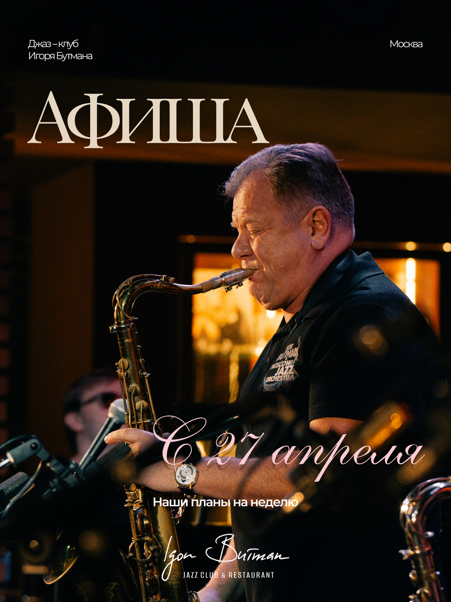 На этой неделе в клубе — особое настроение: готовимся к Международному дню джаза и встречаем душевную премьеру — Квартирник Дмитрия Харатьяна. Отличный повод укрыться от ненастной погоды! До встречи!🧣 Наши планы на неделю: 🌷27 апреля (понедельник), 19:30