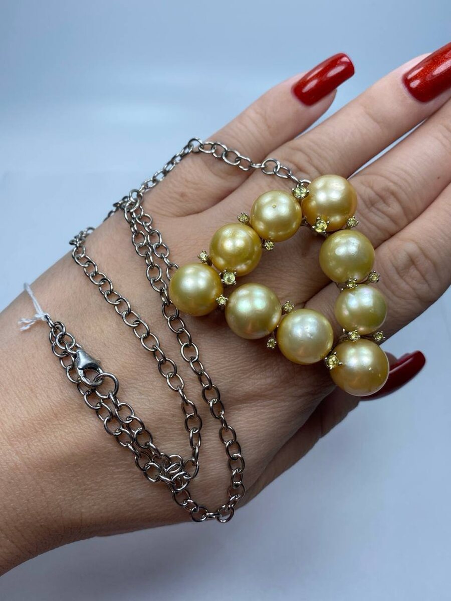 🔥 Морской South Sea Pearl Предоставляем сертификат Изумительное колье - Морской South Sea Pearl, сапфиры - длина 46 см - 50/48 мм - Жемчуг 12 мм - Жемчуг 128 карат - Сапфир 0.93 карат - серебро 925 🔥