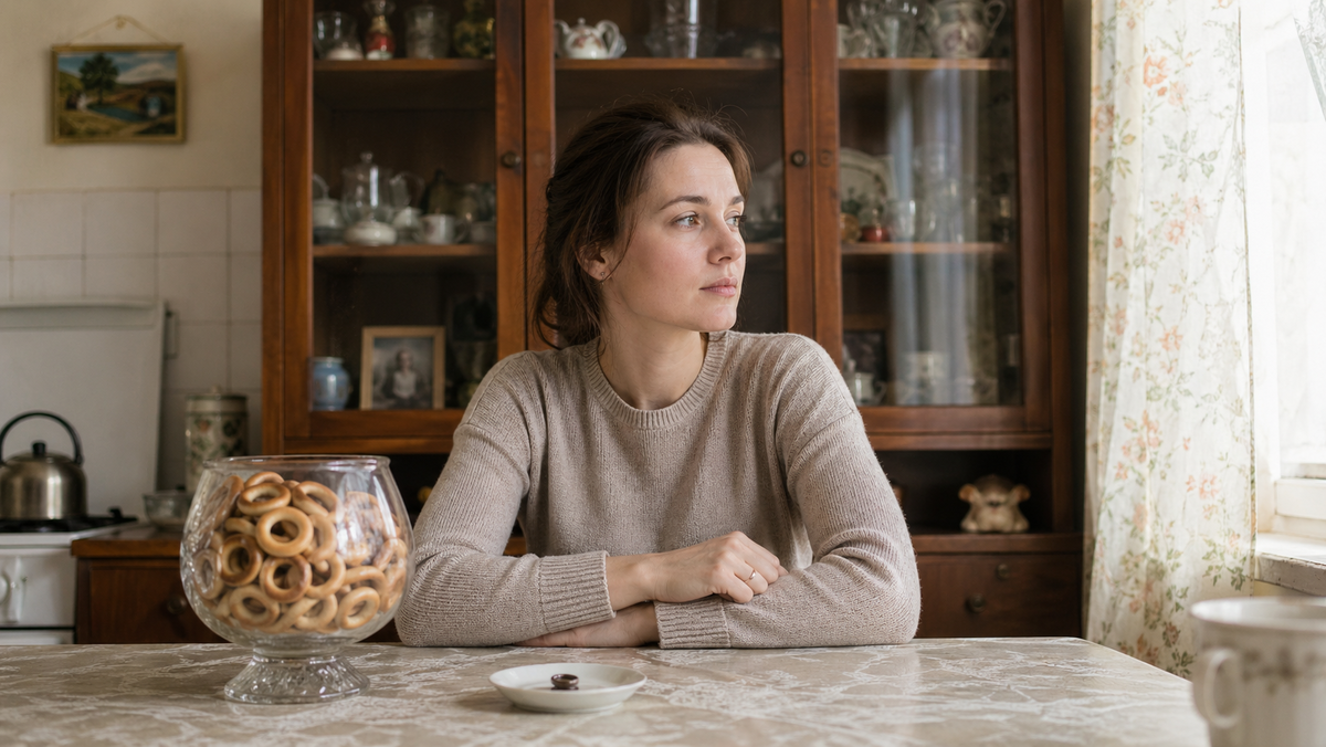 Я протянула руку к вазе. Сушки шуршали так же, как в детстве. Тот же сухой шорох, та же шероховатость, тот же тёплый воздух кухни. Только на дне уже не лежал чужой секрет, перемешанный с крошками. Рядом, в маленьком блюдце, спокойно темнел камешек кольца.