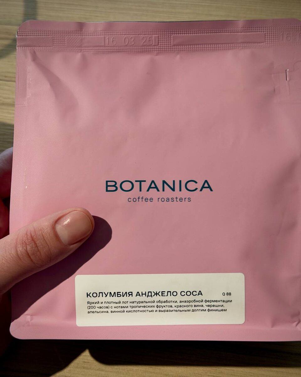 мне кажется это самое вкусное зерно от Ботаники из всех вообще, что я пил которое Колумбия Анжело Соса Женя почему-то читает имя этого фермера как Анжелика Сосо надеюсь, Анжело об это не узнает ну так вот этот кофе шикарен, потому что на вкус он один в один как красное винище его остудить, налить в бутылку, закрыть крышкой и вы бы разницу не поняли, я гарантирую очень плотно, кисленько, винно, виноградно и вишнево на закладке в 30 грамм (и 500 мл воды) так и вовсе появляется чуть-чуть синильной кислоты и это вино уже на 120% из минусов – у Ботаники зип лок у пачек какой-то дурацкий, сложно открыть я каждый раз случайно закрывал и потом страдал почините пожалуйста но кофе крутой