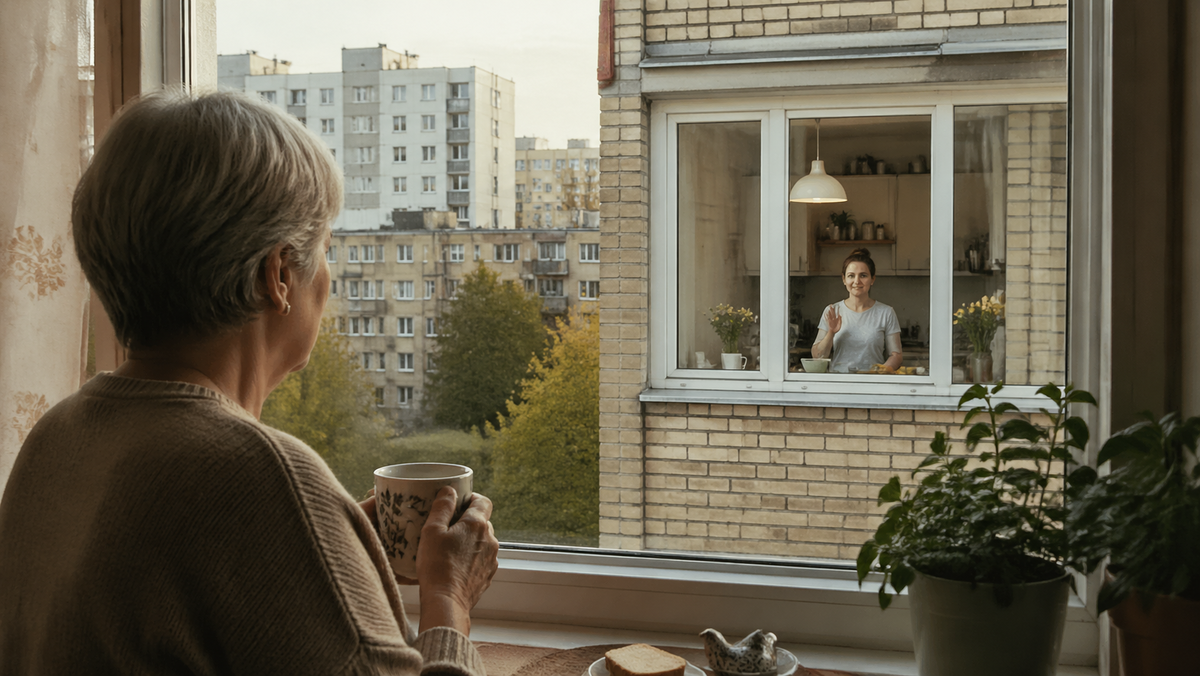 Вера заметила это не сразу. Сначала просто поймала взглядом новый свет в соседнем доме, наискосок от её кухни, а уже через минуту поняла: если встать у раковины и чуть повернуть голову, видно не только чужое окно, но и силуэт дочери, её чайник, край стола и белую кружку. И точно так же, значит, оттуда видно её саму.