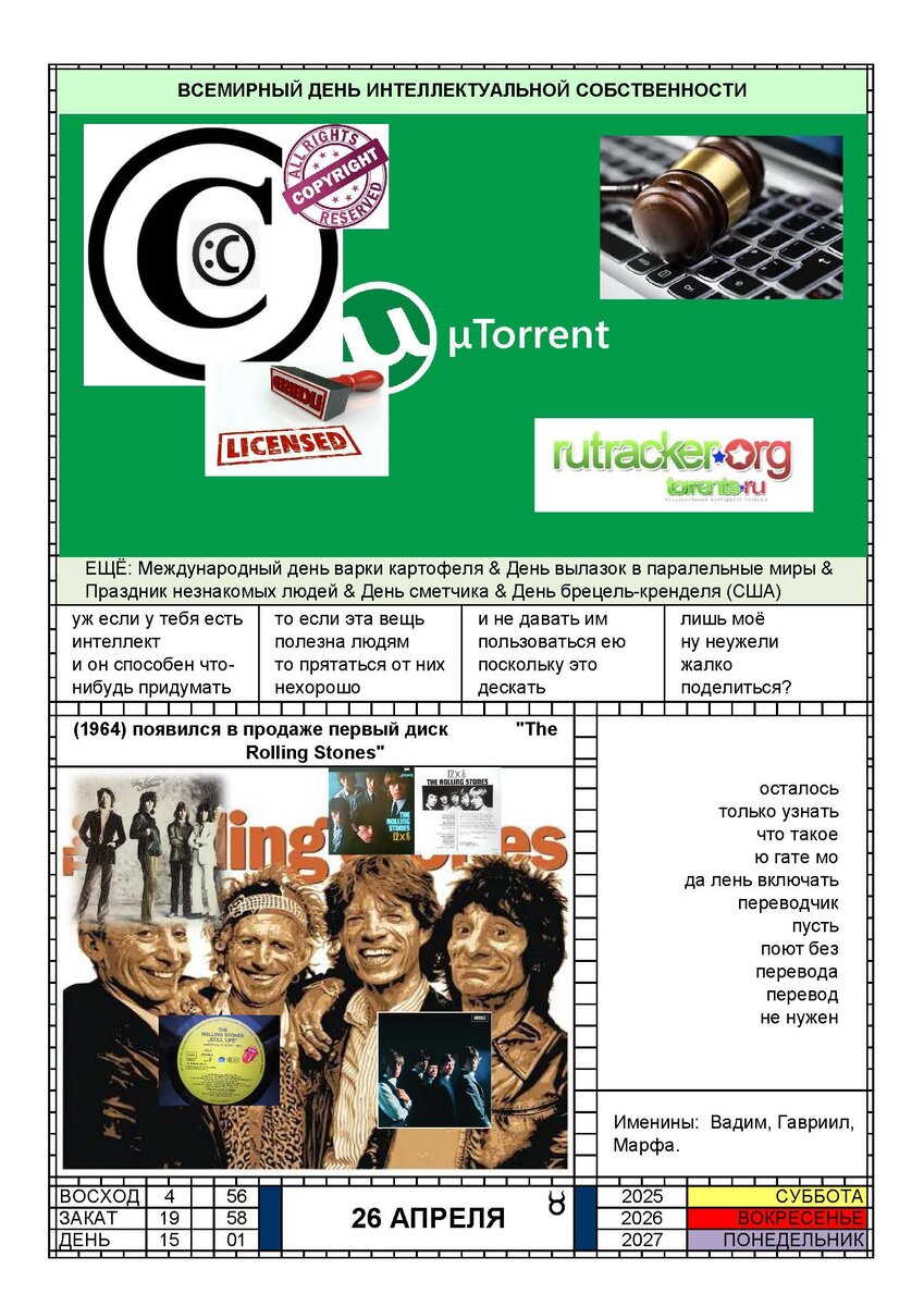 КАЛЕНДАРЬ 26 АПРЕЛЯ