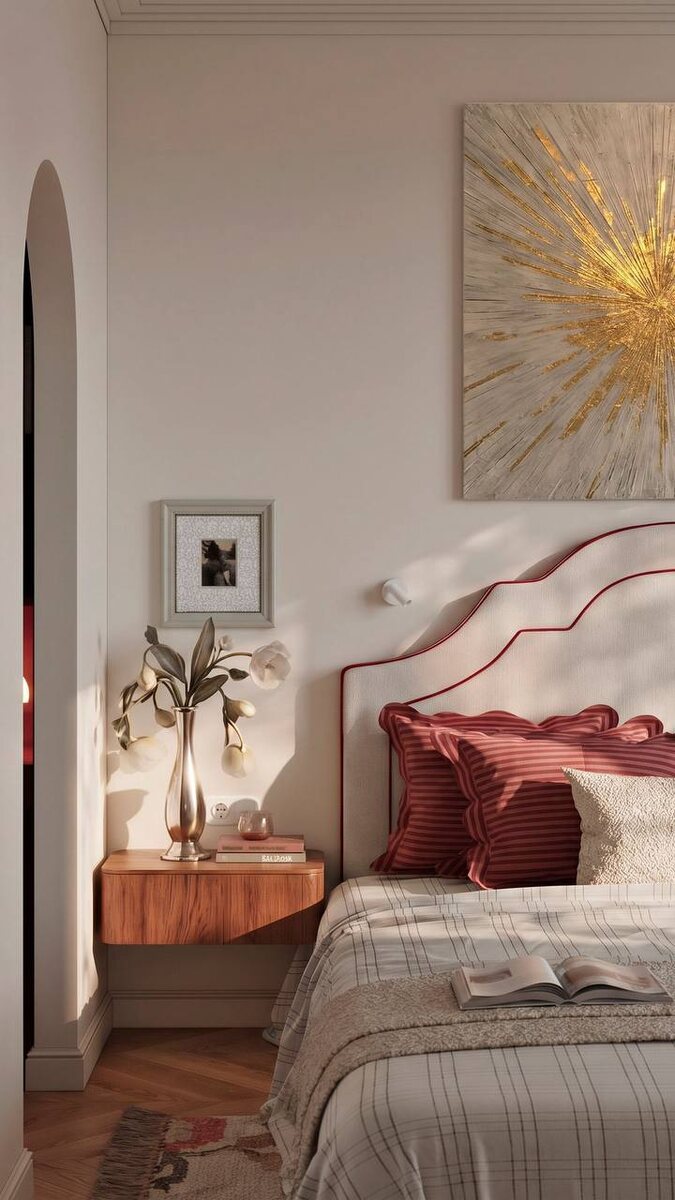 ✨ Спальня для красотки, Амилии 👇 Как вам? С нами на ремонте ей удалось секономить в районе 670 тысяч рублей, читайте ее отзыв в профиле.. Бордовый цвет, или марсала, стал трендом 2026 года в моде и дизайне интерьеров. Этот насыщенный оттенок символизирует роскошь и изысканность ассоциируется с уверенностью и стабильностью #ДизайнИнтерьера #МодныеТренды #ЦветГода #Визуализация #Бордовый