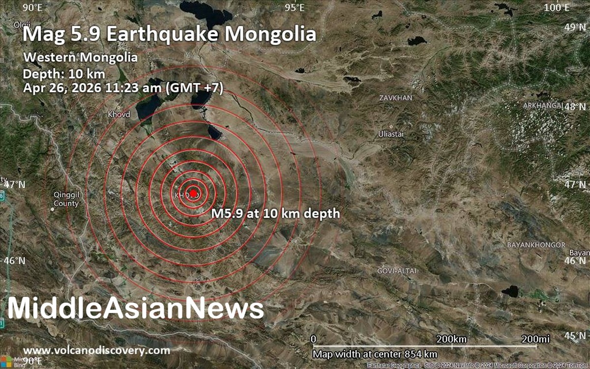 Всего несколько часов назад Европейско-средиземноморский сейсмологический центр (EMSC), считающийся одним из ключевых международных агентств, отслеживающих сейсмическую активность во всем мире, сообщил о землетрясении магнитудой 5.9 вблизи горы Бүрэнхайрхан, сомон Булган, аймак Ховд, Монголия. Землетрясение произошло на небольшой глубине 10 км под эпицентром утром в воскресенье, 26 апреля 2026 года, в 11:23 по местному времени. Еще одно землетрясение магнитудой 5.5 произошло в районе сомона Зэрэг в аймаке Ховд. Время землетрясения (по времени Улан-Батора): 12:23:22 26 апреля 2026. Географическое положение (широта, долгота): 46.90 93.01. Точная магнитуда, эпицентр и глубина землетрясения могут быть пересмотрены в течение следующих нескольких часов или минут, поскольку сейсмологи анализируют данные и уточняют свои расчеты, или по мере того, как другие ведомства публикуют свои отчеты. Позже сеть гражданских сейсмографов RaspberryShake опубликовала второе сообщение, в котором также указала