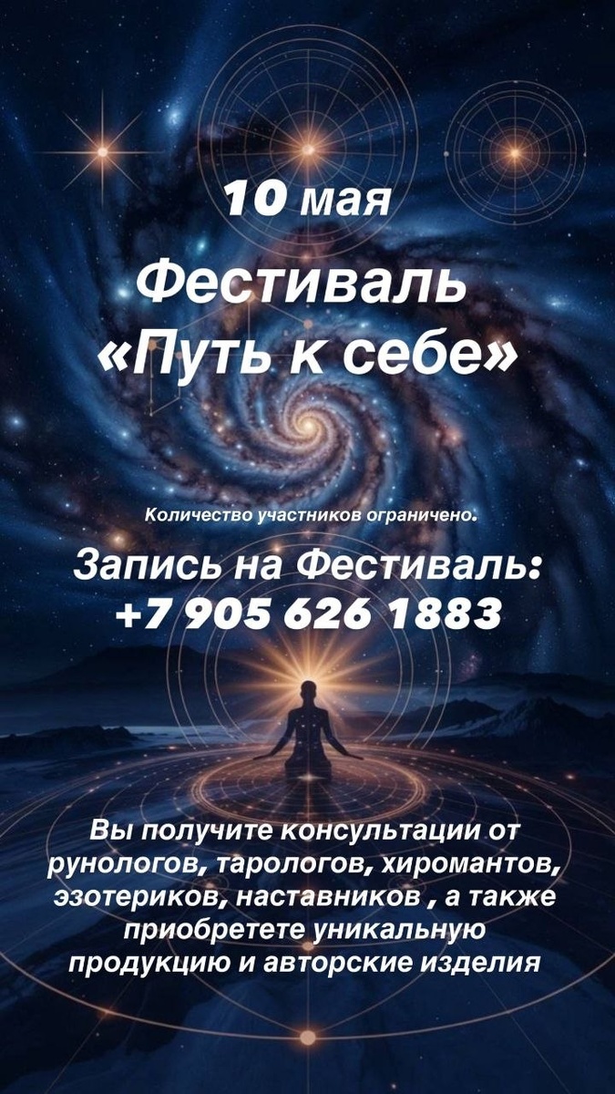 : 🌟 🔥 интересуется ответами на вопросы, не описанными в книгах; 📚 🔥 хочет перейти на другой уровень развития; 🚀 🔥 понимает, что что-то надо менять; 🔄 🔥 чувствует, что чего-то не хватает; 💭 🔥 хочет понять смысл жизни и свой истинный путь; 🗺️ 🔥 хотел бы повысить уровень своей энергии; ⚡ 🔥 хочет увидеть и услышать больше, чем он видел и слышал; 👁️👂 🔥 хочет приобрести полезную для здоровья продукцию. 🌿 🔥 любит необычное, созданное руками человека. ✨ __ На Фестивале вас ждут: 🎉 • травяной чаи с полезными закусками; 🍵 • мастер-классы по игре на ханге и по изготовлению личного оберега; 🎶🛡️ • продажа изделий ручной работы 🧶 • консультации практиков с многолетним опытом работы 👩⚕️ • участие в лотереи для всех участников 🎁 • продажа трав и продукции для здоровья 🌱 • участие в мощной медитации от Духовного Наставника Ирины Лакши. Все медитации Ирине идут из Потока… 🧘♀️✨ ——————————————————————— 💜Что вы получите от Фестиваля: 💯 Участники получают доступ к уни