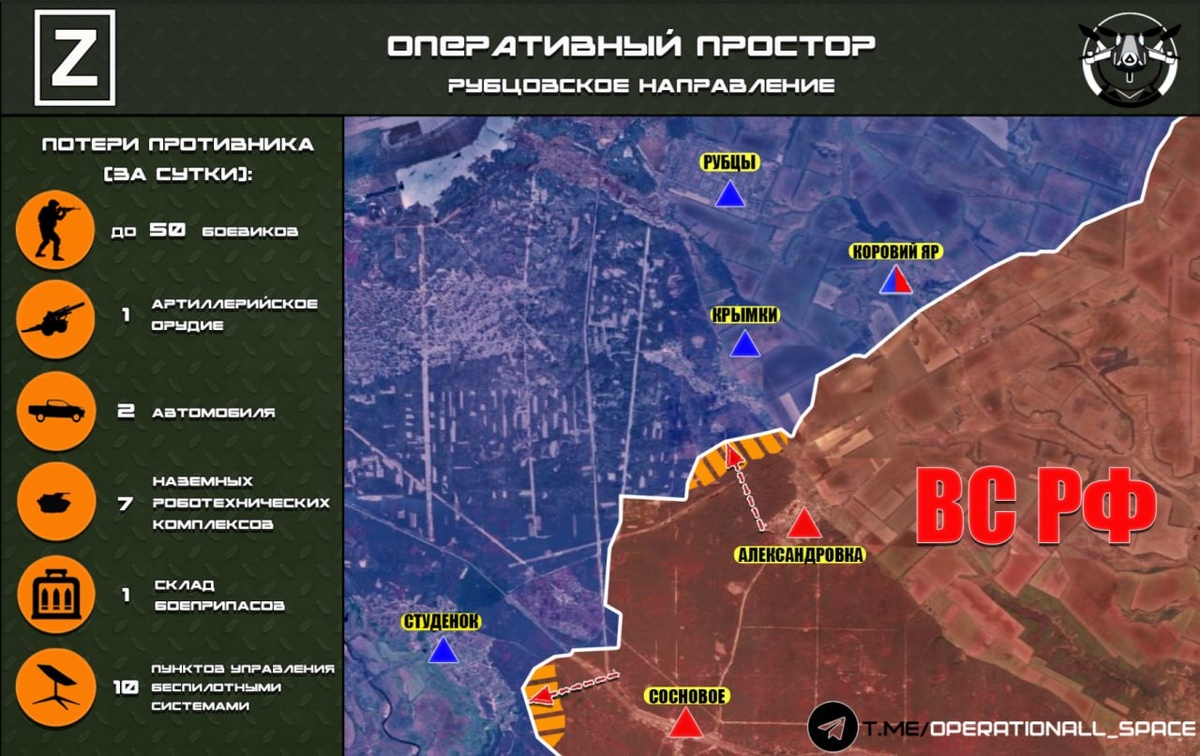 п. Студенок и н.п. Крымки. 🔻Подразделения #20_армии ГВ «Запад» при поддержке огневых средств улучшают тактическое положение на подступах к населенным пунктам. Оперативный простор 👻Мы в MAX! Карта носит ориентировочный характер и может быть скорректирована по мере поступления новых данных.