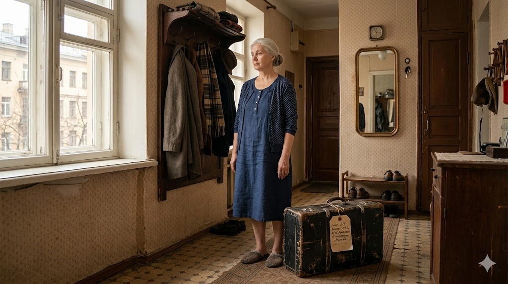 Ира стояла в моей прихожей и смотрела на чужой чемодан у вешалки. Чёрный, потёртый по углам, он стоял там уже третий день.