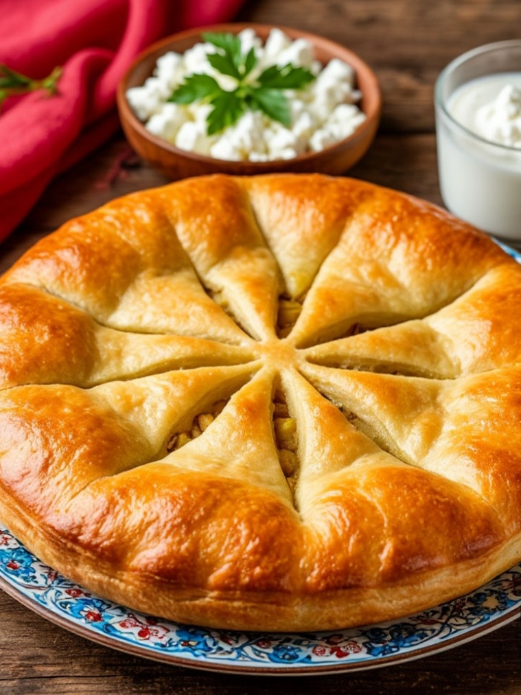 Готовлю тесто из кефира, муки и соды — пока картофель варится. Начинка из размятой горячей картошки и натёртого сыра, пирог формирую руками, выпекаю при 220 °С всего 10 минут. Получается невероятно ароматное и сытное блюдо — идеальный выбор на обед или ужин.