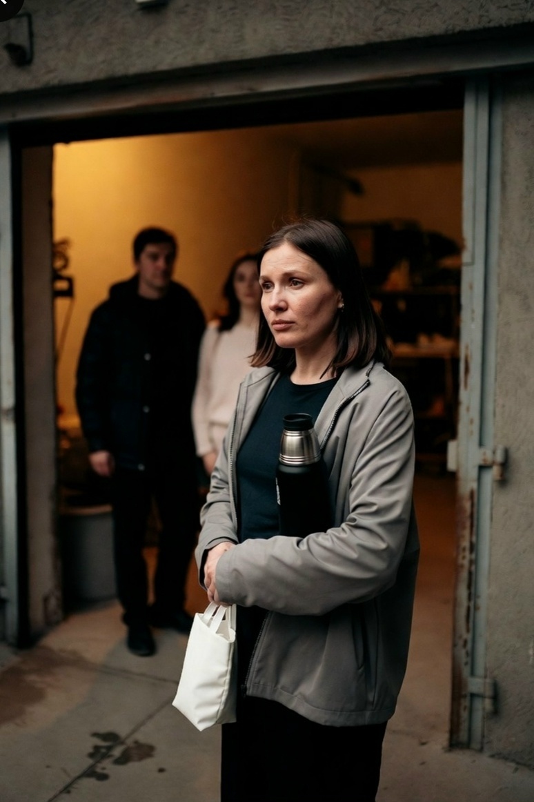В гараже было темно, только свет от переноски на верстаке и слабый дневной свет из маленького окошка под потолком. Сергей стоял спиной к ней, в синей куртке. А перед ним, почти вплотную — женщина. Не просто женщина. Очень ухоженная женщина. Лет тридцати пяти примерно. Светлые волосы до плеч, идеальная укладка, даже в гараже. Белая блузка, узкие джинсы, дорогие кроссовки. На безымянном пальце — тонкое кольцо. Не обручальное. Другое.