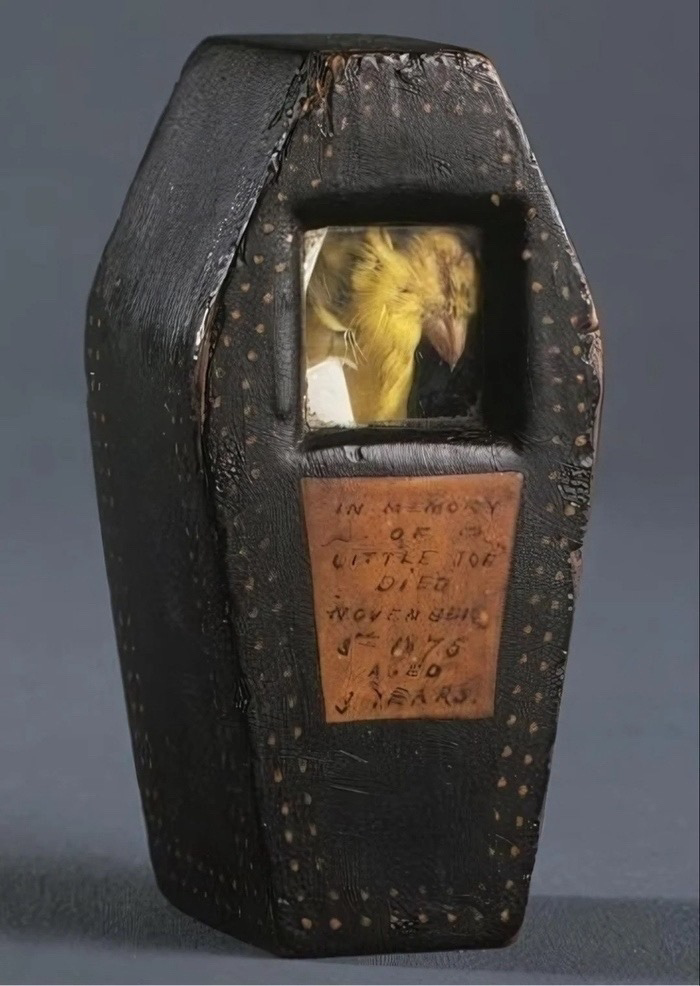 Эта канарейка прожила пять лет, что довольно много для домашней птицы. Возможно, она провела годы своей жизни, ежедневно рискуя ради спасения чужих жизней. Представьте себе: каждое утро эта маленькая жёлтая птичка отправлялась в тёмную шахту, зная, что её судьба зависит от уровня токсичных газов.