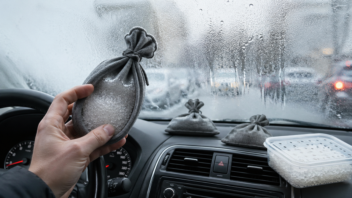 Влажность внутри легко достигает 90%. Тёплый воздух + холодное стекло = мгновенный конденсат. Обычные осушители из автомагазинов — это тот же силикагель, но с наценкой в 5–10 раз. Вы платите 700–1500 ₽ за пластиковую коробочку с надписью «AUTO DRY».