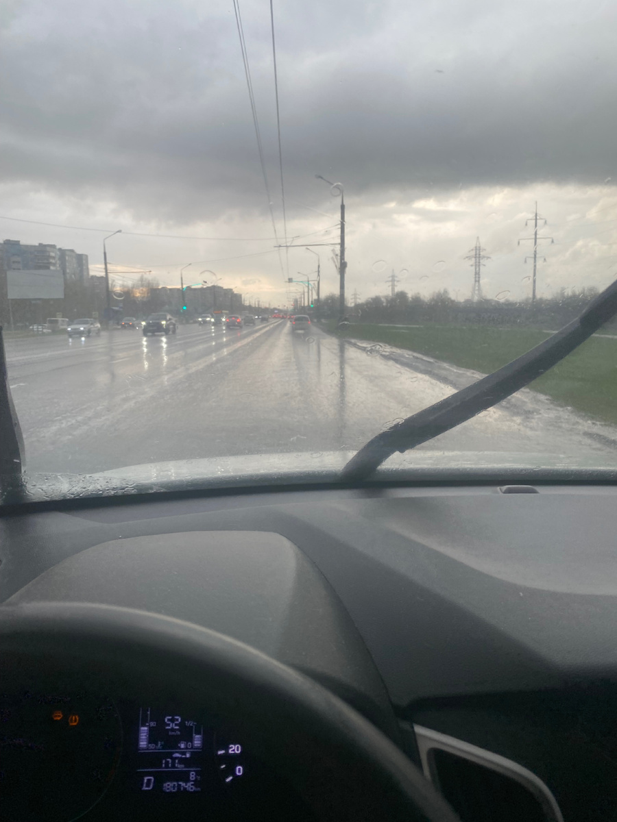 Был сильный дождь, и я маму попросила посидеть в машине, так как быстро не получится; она согласилась.