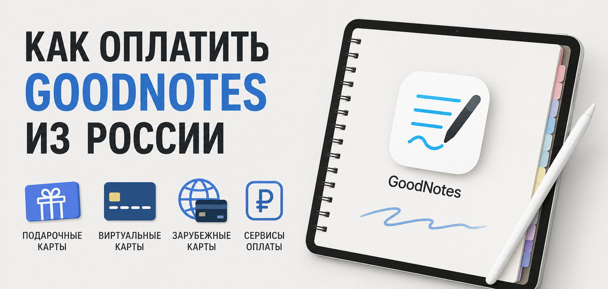 К 2026 году появились более удобные решения. Сегодня доступ к платным функциям GoodNotes можно оплатить дистанционно, используя подарочные карты, виртуальные карты или специальные сервисы.