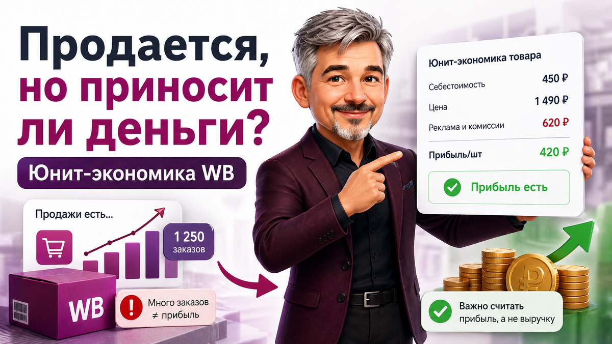 Очень часто продавец оценивает товар по простому признаку: “продается” или “не продается”. Но на Вайлдберис этого недостаточно. Товар может продаваться стабильно, собирать заказы, крутиться в рекламе и даже выглядеть успешным по обороту. Но при этом его прибыль на штуку может быть слишком низкой, чтобы считать позицию реально сильной. Поэтому главный вопрос звучит так: Сколько товар приносит на одной продаже? Когда ты смотришь на прибыль за 1 штуку, ситуация становится намного честнее. Сразу видна разница между: • товаром, который просто создает движение; • товаром, который дает нормальный финансовый результат. Если прибыль на штуку низкая, то любой рост расходов начинает бить особенно сильно. Немного дороже реклама, немного выше логистика, чуть хуже выкуп — и товар уже перестает быть интересным. Именно поэтому юнит-экономика важнее красивой выручки. Для принятия решений нужно хотя бы базово понимать: • себестоимость; • цену продажи; • расходы маркетплейса; • рекламу; • прибыль на одну
