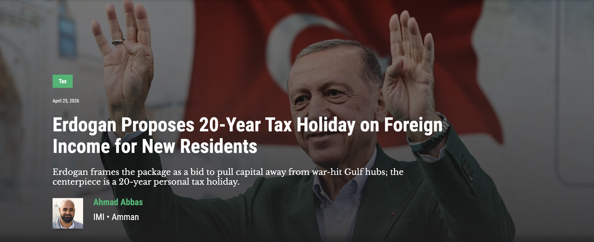 Президент Турции Реджеп Тайип Эрдоган анонсировал беспрецедентный налоговый пакет: новые резиденты, которые переедут в страну и не были налоговыми резидентами Турции последние три года, получат 20-летнее освобождение от уплаты налога на доходы, полученные за рубежом. Одновременно власти запускают единый онлайн-портал для регистрации компаний, получения разрешений на работу и урегулирования всех налоговых вопросов. Релоканты в Дубае, нервно гуглят билеты в Стамбул и Анталью. Выступая в Стамбуле на церемонии открытия программы «Сильный центр инвестиций века Турции», президент Реджеп Тайип Эрдоган сделал заявление, которое способно перекроить карту международной налоговой конкуренции. Ключевой элемент пакета — персональных 20-летние налоговые каникулы для новых резидентов. Физические лица, которые переедут в Турцию и не были налоговыми резидентами страны в предыдущие три года, полностью освобождаются от уплаты турецкого налога на свои зарубежные доходы и прирост капитала. Налог будет взим