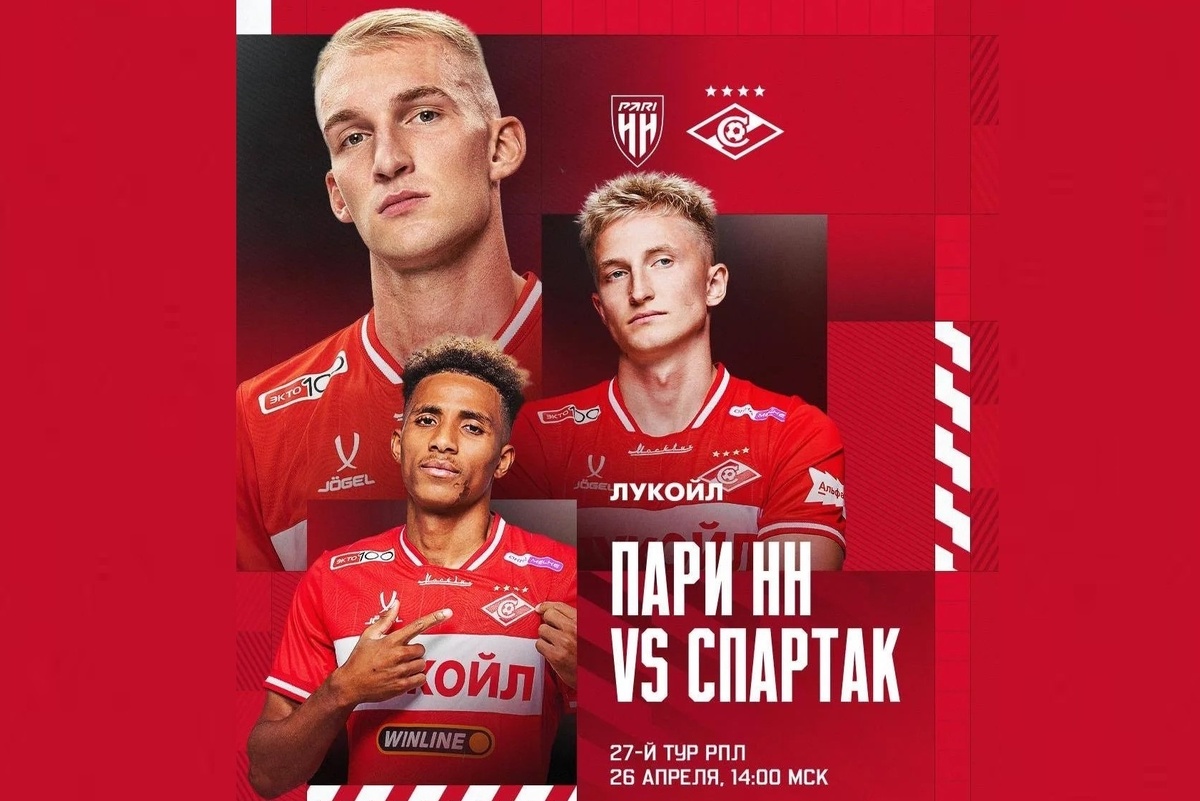 Стартовый состав «Спартака» на матч с «Пари НН» в 27 туре РПЛ.