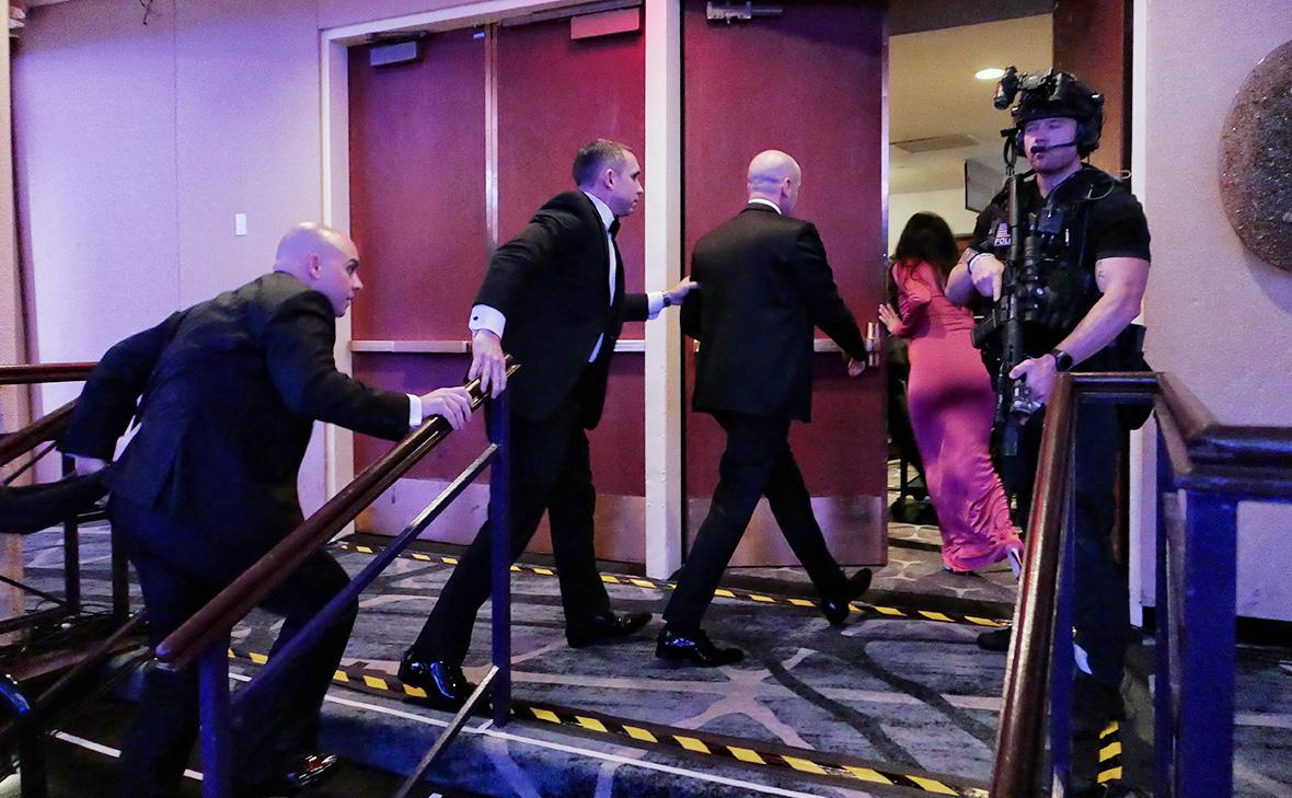 Нет, все-таки вот эти американские развлечения мне не очень нравятся. Что за дурацкая привычка, чуть что, хвататься за пистолеты? А поговорить? Тут не Дикий Запад все таки, понимать надо. Вроде, говорят, цивилизованная страна, приличные люди, требуют брать с них пример... А приглядишься - мама дорогая, дикари какие-то! В общем, все, как обычно, начиналось красиво - вечером в субботу в отеле Washington Hilton проходил званый ужин Ассоциации корреспондентов Белого дома. Казалось бы, ну собрались вы там, и хорошо - ешьте гамбургеры, пейте кока-колу, рассказывайте анекдоты. Но они решили позвать Трампа... На кой черт он вам нужен? Трамп - он же очень проблемный мужик, где ни окажется, там обязательно начинается всякая ерунда. Ну и на званом ужине началось: во время беседы Трампа с журналистом CBS Weijia Jiang, когда в зале находились тысячи гостей, из вестибюля донеслись громкие хлопки. «Я подумал, что это упал поднос», – позже сказал Трамп, потирая левое ухо. Но оказалось, что это н
