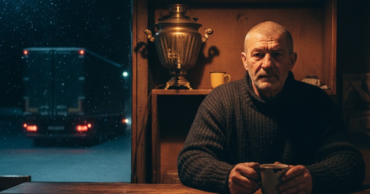 — Михалыч, ты вот думал когда-нибудь — зачем мужик в восемьдесят девятом тащил с собой сервиз восемьсот километров? — Валера налил мне чаю и не глядя бросил сахар. Я зашёл в «Русь» в полдвенадцатого ночи. На улице минус двадцать восемь, парковка пустая, моя фура — единственный силуэт под фонарём. В зале темно, кроме угла у стойки. За стойкой Валера. В сером свитере, седой, тряпку в одной руке, чайник в другой. Двенадцать лет он тут стоит. И каждый раз я захожу — он на месте. «Русь» стоит на трассе Пермь — Екатеринбург, перед Ачитом. Не доезжая двух километров. Низкое здание, четыре стола, кухня за фанерной перегородкой. Валера живёт в Ачите, ходит сюда пешком. Два километра туда, два обратно, в любую погоду. Машины у него нет. Двенадцать лет назад продал свой ВАЗ-2106, когда вышел на пенсию. У него своя кружка. Серая, фаянсовая, со сколом на ободке. Он из неё пьёт чай. Двенадцать лет одну и ту же. Когда я в первый раз сюда зашёл, осенью двадцать третьего, она у него уже была. Скол был