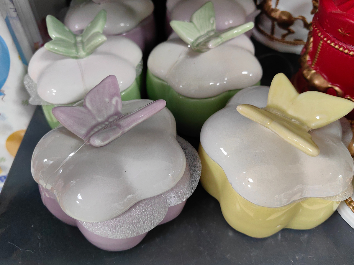Фигурка бабочки повторяется на всех шкатулках. Отличается только цветом. Пригодится для украшений, крошечных резиночек или заколок для волос.