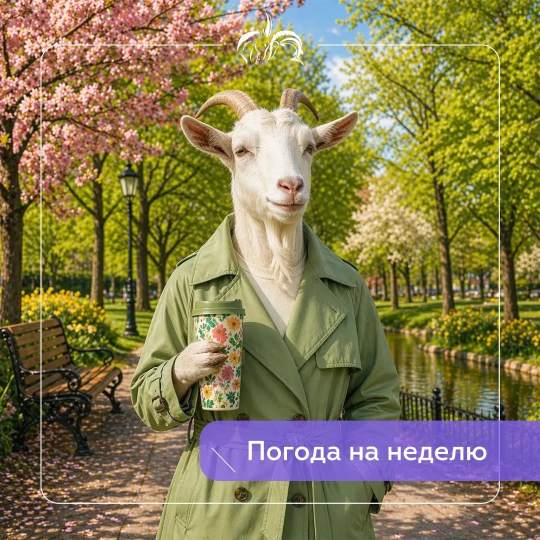 «По зеленеющей траве — апрель снимает старый палантин» Коза поет от радости. На следующей неделе вернется тепло. По прогнозам синоптиков, средняя температура воздуха составит +14 градусов днем и +6 градусов ночью. В выходные возможны осадки! ✅ Подписаться на Козу и Стерлядь 📲 Коза и Стерлядь в МАХ