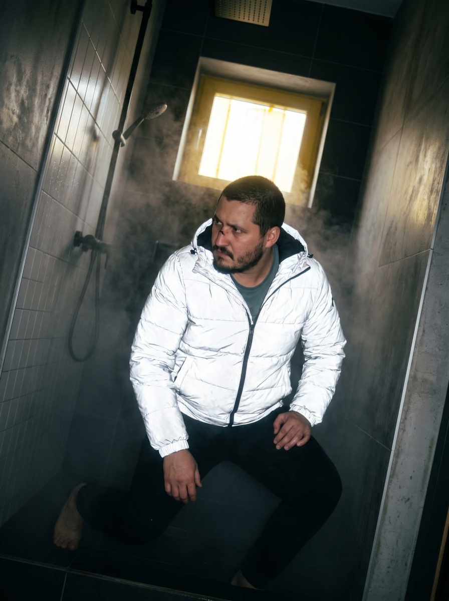 🔠🔠🔠🔠🔠🔠 🔥 Серия мужских промптов 👨💻 3 из 3 Professional Dutch angle shot canted frame (use the uploaded photo as a face reference). --An athletic-built man with a broken nose and bridge of the nose, dressed in a silver-colored reflective down jacket, crouches dynamically on one knee in an avant-garde fashion pose in a dark bathroom with a modern loft design, inside the shower with a modern loft design, with an angry, emotionless face, and a small window that casts light from the back of the character, creating a backlight. The room is filled with light steam and yellow light --Shot on Olympus OM-10 Black + F.Zuiko Auto Zoom 35-70 mm f/3.5-4.5 Film: Fuji Superia X-tra 400 (Expired) --ar 3:4 --not a selfie Ссылка на курс обучения. Заказать промт или фотосессию. ✉️ ❤️🔥 Приложение для генерации по ссылке ! #нейросеть #aiфотосессия #промтыдляфотографа #нейросеть #aiфотосессия #промтыдляфотографа #мужскойпромт