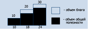 Из того, что экономическая полезность благ зависит от степени их ограниченности, насыщения потребностей, следует, что рост производства благ не прямо пропорционален росту их экономической полезности, так как эти блага по мере увеличения их наличного количества обесцениваются, становятся менее ограниченными, относительно менее полезными.
