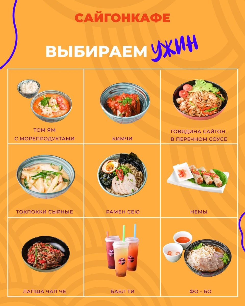 🥘 Собираем и выбираем идеальный ужин 👌 После тяжелого рабочего дня разрешите себе всё самое вкусное! С этим вам поможет САЙГОНКАФЕ