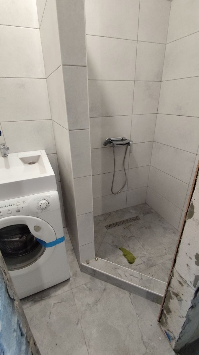 Осталось только купить зеркало, коврик и полочки. Но это потом☺️. Мы довольны и работой мастеров и тем, что получилось выжать из такого маленького помещения максимальный функционал. Примерились в душевой, места хватит чтобы помыться и стоя и сидя. И подход к раковине есть и стиралка. Сделали очень большое дело☺️