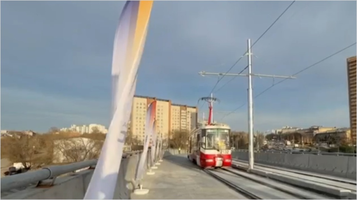 Первый трамвай проехал по эстакаде четвёртого моста в Новосибирске