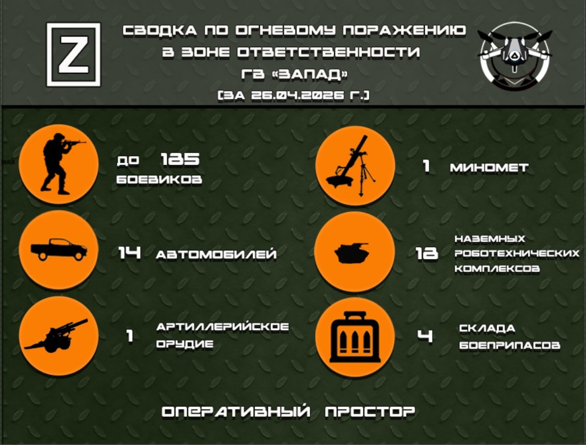 Сводка по огневому поражению в зоне ответственности ГВ «Запад» за 26.04.2026 г