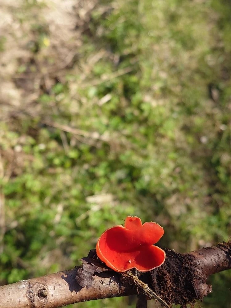 Дохромала до леса около дачи, благо рядом совсем, метров 100:), а там вон и чашечки эльфийские выросли - саркосцифа. Саркосцифа — род сумчатых грибов (аскомицетов) с характерными чашевидными плодовыми телами ярко-красного цвета. В народе их называют «эльфовой чашей», «алой чашей», «бабушкиными ушками» и другими именами. В России распространены два близких вида: саркосцифа алая (Sarcoscypha coccinea) и саркосцифа австрийская (Sarcoscypha austriaca). Саркосцифа алая чаще встречается в южных регионах России, саркосцифа австрийская — в средней полосе и севернее. Визуально их сложно различить, но при внимательном рассмотрении (например, с помощью лупы) можно заметить разницу: у алой волоски на внешней поверхности шляпки относительно прямые, у австрийской — скрученные. Грибы растут на влажной гниющей древесине лиственных пород: на стволах, ветвях, валежнике, корнях деревьев, прикрытых плодородным грунтом или листовым опадом. Иногда кажутся растущими прямо из земли, если древесина погруже