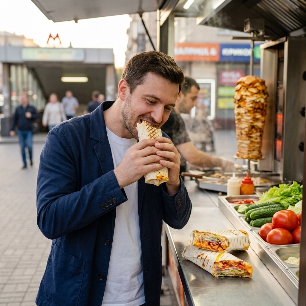 Шеф-повар с 15-летним стажем выбирает шаурму у метро не потому, что у него нет денег на ресторан. А потому, что он знает: иногда самое честное и вкусное — это то, что готовят прямо при тебе, без понтов и наценок за атмосферу.