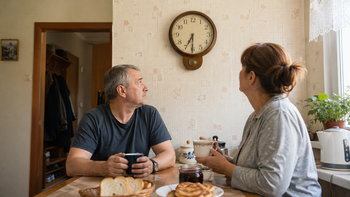 Утром в субботу кухня была залита мягким светом. Глеб резал хлеб, слишком толстыми ломтями, как всегда. Вера сметала крошки ладонью. На подоконнике сохли вымытые банки. Из прихожей доносилось редкое тиканье новых часов. Там оно никому не мешало.