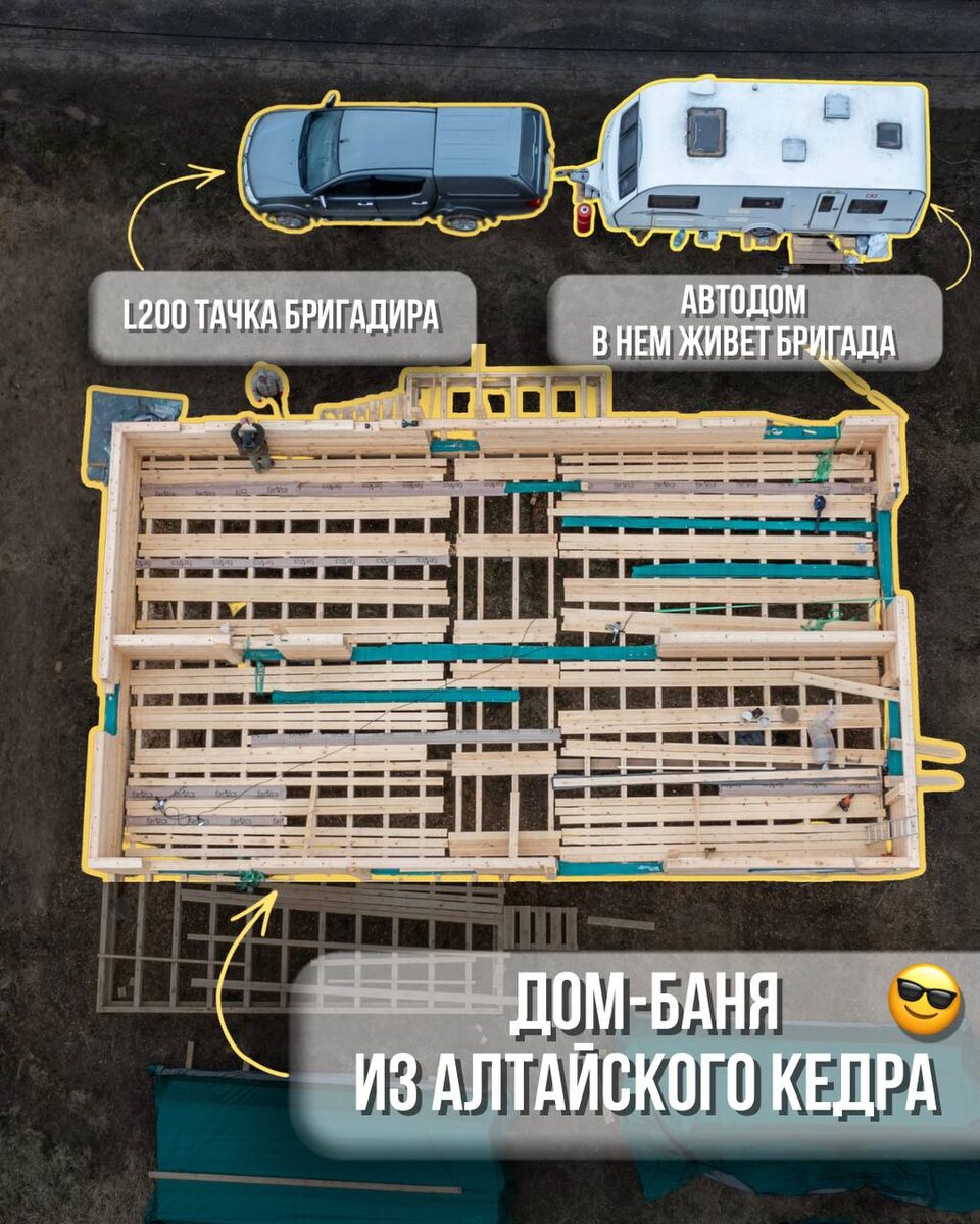 Это один из наших проектов в коттеджном посёлке Сосновый берег Чеховского района, где мы строим дом с баней из алтайского кедра по проекту «Вера». ℹ️ Немного о материале, из которого строим. Профилированный брус камерной сушки из алтайского кедра. Он растёт в сложных горных условиях, поэтому изначально более устойчив к агрессивным условиям, меньше подвержен деформации и ведёт себя гораздо стабильнее. Но ценят кедр не только за это: он выделяет фитонциды и создаёт особый микроклимат в доме. А ещё у него насыщенный узнаваемый аромат. У нас даже был случай, когда во время разгрузки люди останавливались и спрашивали, что это за материал. Некоторые даже хотели его выкупить прямо на месте. Следите за новостями — совсем скоро покажем следующий этап 👍 Дом уже начинает обретать форму.