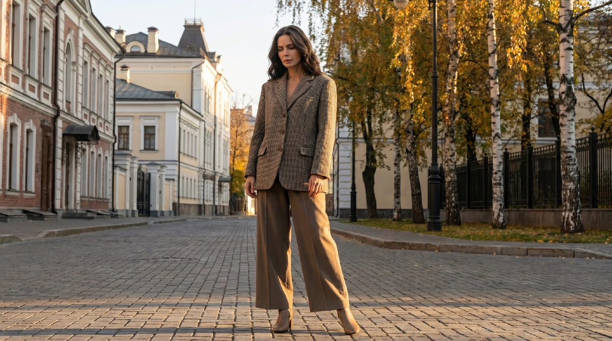 После 50 пиджак должен не прятать фигуру, а собирать её. Правильная длина делает ноги длиннее, талию заметнее и весь образ живее. Ошибка в несколько сантиметров легко превращает хорошую вещь в скучную.