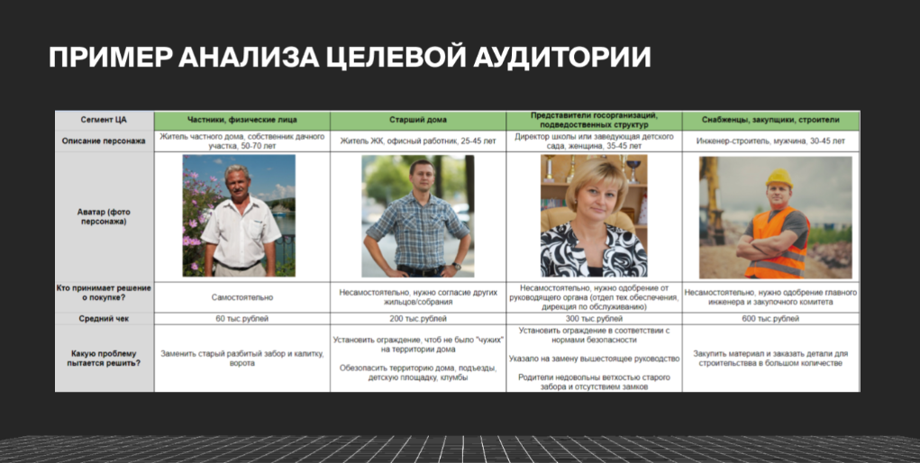 “женщины 30–45” или “малый бизнес”