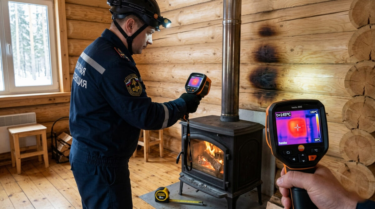 Самая распространённая ошибка, с которой сталкиваются проверяющие инспекторы и эксперты после пожаров, - недостаточный отступ топки от ближайшей деревянной стены. Производители металлических печей-каминов в инструкциях часто указывают европейские нормативы, согласно которым отступ от незащищённой деревянной стены может составлять 20-25 сантиметров. Это создаёт у хозяев и монтажников ложное ощущение нормы.