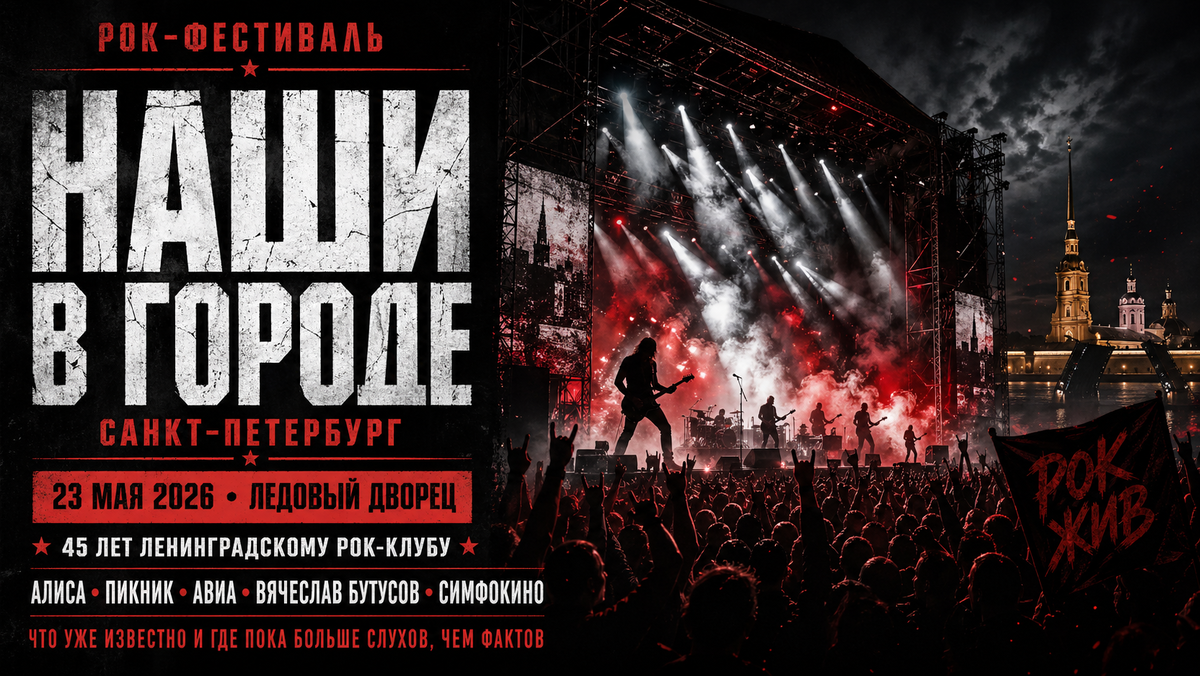 Фестиваль «НАШИ в городе» в 2026 году заметнее всего привязан к Санкт-Петербургу: 23 мая в Ледовом дворце пройдёт юбилейный концерт «45 лет Ленинградскому рок-клубу», связанный также с 25-летием «НАШЕ Радио — Санкт-Петербург». Это не просто очередная сборная рок-афиша, а вечер с понятной исторической рамкой: Ленинградский рок-клуб, его наследие и музыканты, для которых эта среда была не декоративной легендой, а реальной частью пути.