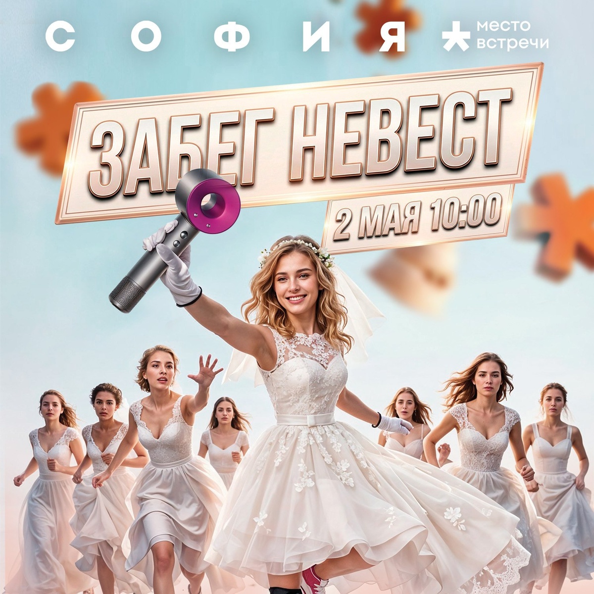 🌼🌷🥀 2 мая в 12:00 от районного центра «Место встречи София» стартует «Забег невест» — яркое свадебное событие весны! Участие бесплатное, дресс-код обязателен: белое платье. А добавить блеска и яркости помогут станции с аксессуарами от наших партнеров! Что вас ждёт: 🌼 разминка с тренером DDX Fitness 🌼 забег на 250 метров вдоль РЦ 🌼 награждение и фестиваль на фуд-холле Призы — серьёзные: фен Dyson за первое место, ночь в парк-отеле «Бридж Кантри» за второе, уикенд в «Розендорф» и абонемент DDX за третье. Плюс косметика Likato и L'AVANT для мест с 4 по 25, подарки всем участницам и специальные номинации — в том числе «За волю к победе» для последней финишёрки 🥹 Участвуют только девушки 18+. ➡️Регистрация бесплатная по ссылке: sofia.mestovstrechi.ru Сборы начнем с 10:00 на фуд-холле 3 этажа «Место встречи София», Сиреневый бульвар, 31 Выбирайте свои самые праздничные белые платья -- и побежали! 👟 ➖➖➖➖➖➖➖➖➖➖➖ «Место встречи» в MAX 📲 «Место встречи» в VK 💼 «Место встречи»